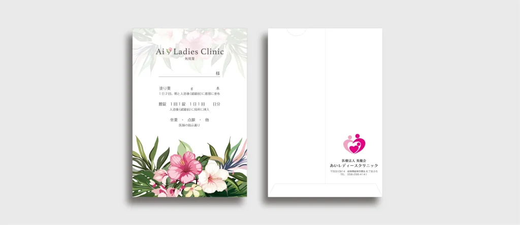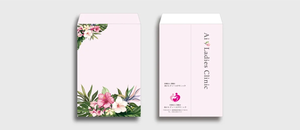 岐阜市にて産婦人科を運営されているあいレディースクリニック様のブランディングに関わるデザイン制作を担当させていただきました。 看板をはじめ、長3・角2封筒、箸袋、薬袋など、院内外で使用される各種制作物を通して、女性らしく華やかな印象と、統一感のあるデザインに仕上げさせていただきました。