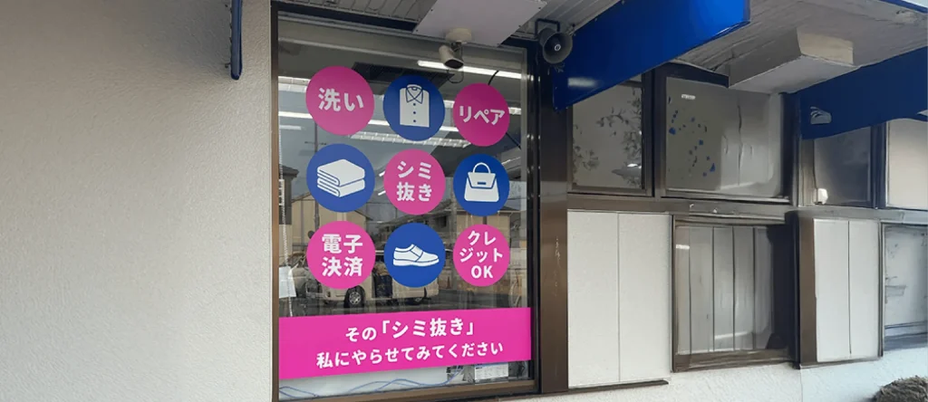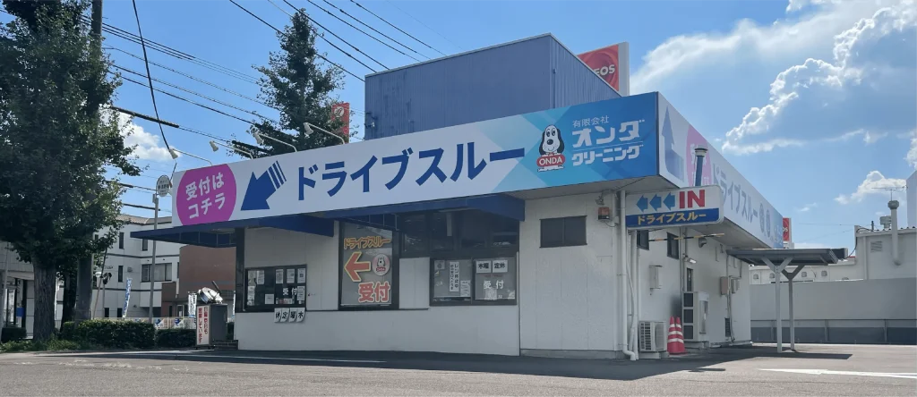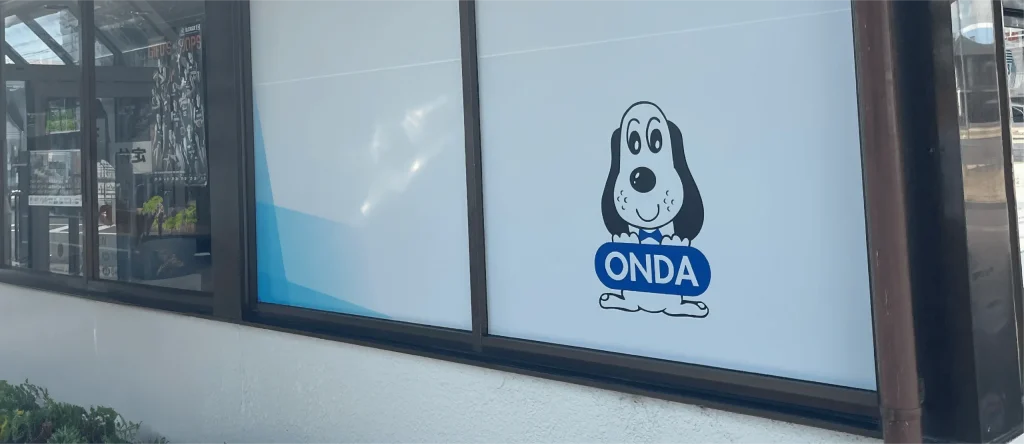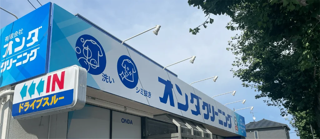岐阜県各務原市にある、有限会社オンダクリーニング 花園店 様のサイン工事を担当させていただきました。 壁面サインをはじめ、ガラスシート施工、行燈スタンドサインなど、視認性と分かりやすさを意識したサイン制作・施工を行っております。