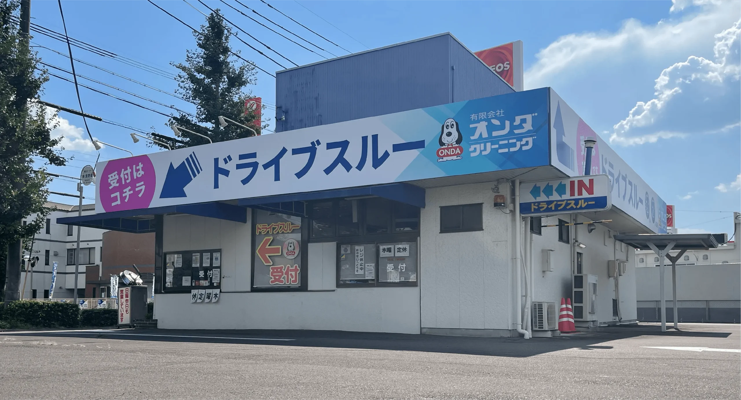 岐阜県各務原市にある、有限会社オンダクリーニング 花園店 様のサイン工事を担当させていただきました。 壁面サインをはじめ、ガラスシート施工、行燈スタンドサインなど、視認性と分かりやすさを意識したサイン制作・施工を行っております。