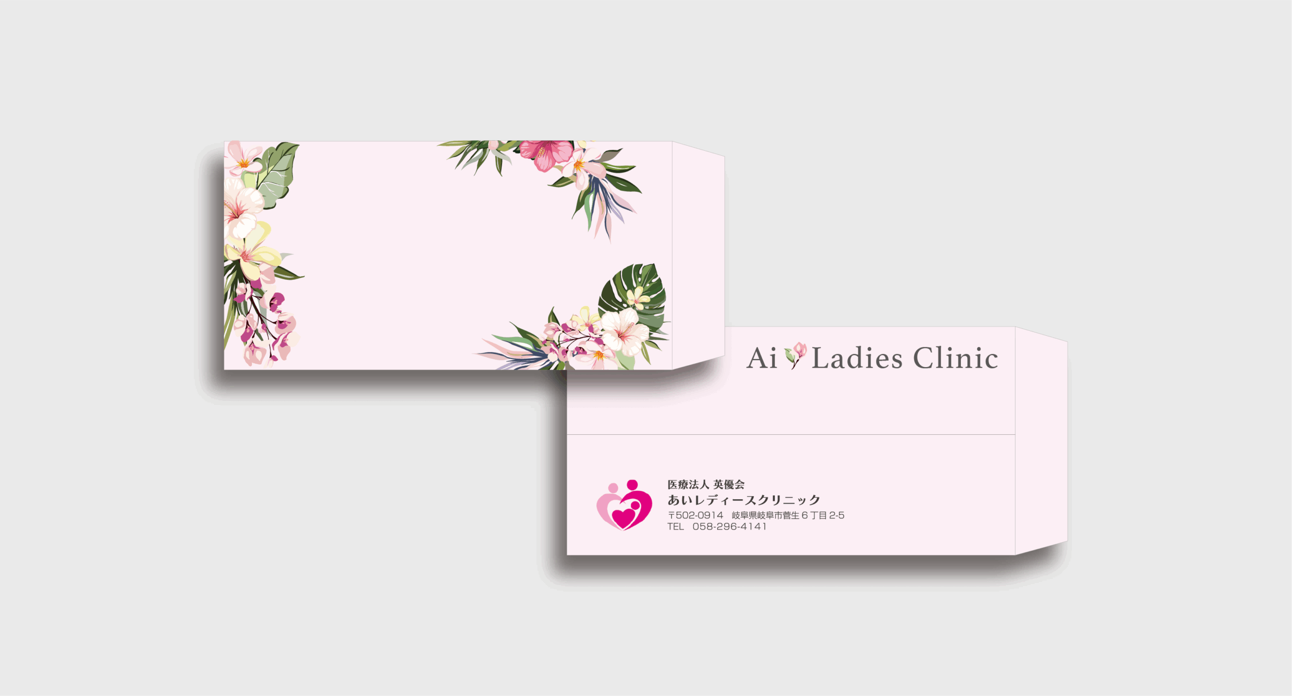 岐阜市にて産婦人科を運営されているあいレディースクリニック様の封筒・箸袋・薬袋のデザイン制作を担当させていただきました。 女性らしいやわらかな印象を大切にしながら、院内ツールとしての使いやすさと統一感を意識したデザインに仕上げさせていただきました。